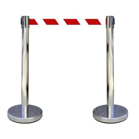 - Viso Chrome Stainless Steel Retractable Barrier, 3m, Red, White Tape - RECO22SRRB
