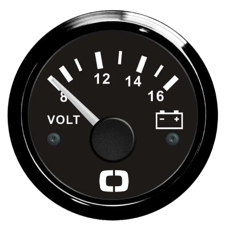 Accurate 8/16 V voltmeter with a stylish black dial for reliable marine use.