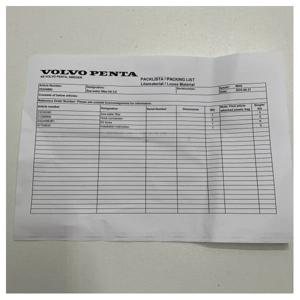 Ensure optimal seawater filtration with the Volvo Penta 2.5 inch strainer filter kit.