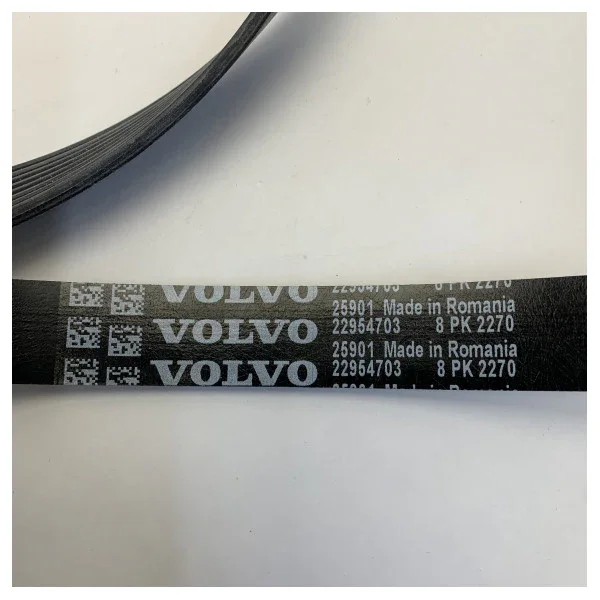 The Volvo Penta V-Belt 22954703 has a length of 2270 mm. This is the correct drive belt for various models of Volvo Penta marine engines. Always check your engine's manual or the current part number to ensure correct compatibility before ordering.