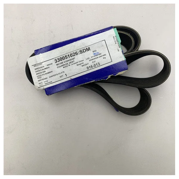 - V-ribbed design: The V-ribbed profile provides better grip on the pulleys, preventing slippage and increasing efficiency.