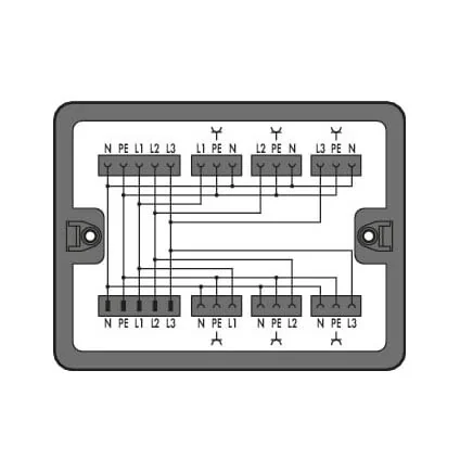 Efficiently manage electrical distribution with WAGO's 3 Phase 7 Way Board, rated at 25 A.