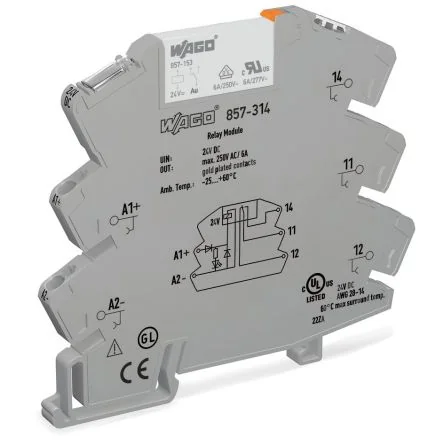 WAGO 857 Series Relay Module, DIN Rail Mount, 24V dc Coil, SPDT, 1-Pole, 6A Load - 857-314
