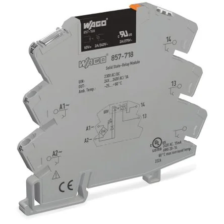 WAGO 857 Series Solid State Relay, 2 A Load, DIN Rail Mount, 240 V ac/dc Load - 857-718