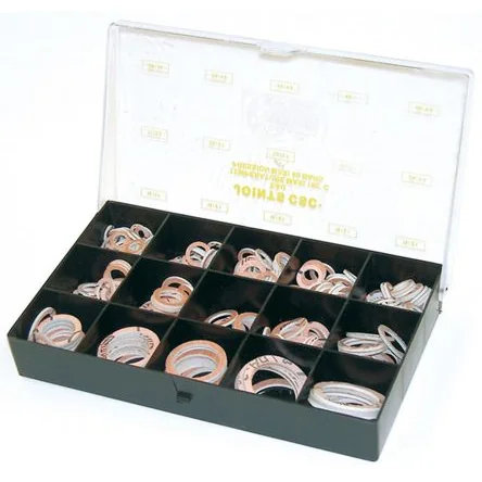 Box set of 295 CSR asbestos-free fibre seals. This box set comprises an assortment of 295 CSR asbestos-free fibre seals for standard size connections. The set offers a range of 7 different sizes. These seals are used to replace asbestos rubber seals.