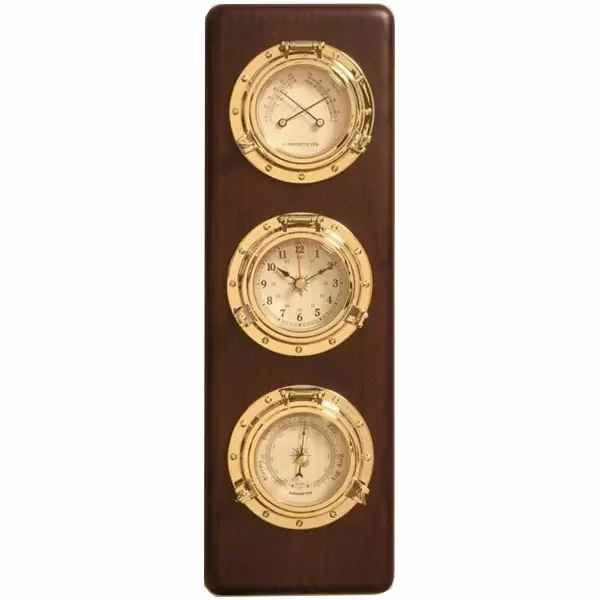 Barometer, clock, thermo/hygrometer mounted on fine wood board.