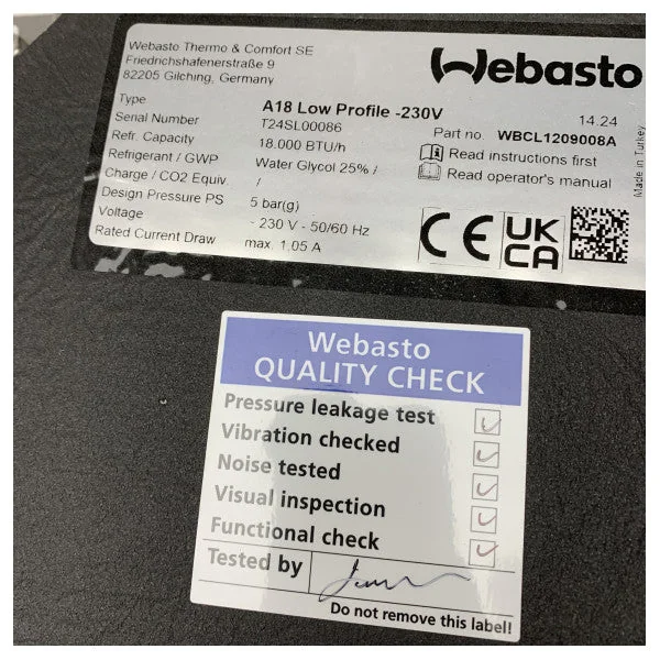 Enjoy optimal comfort with the Webasto A18 air handler!