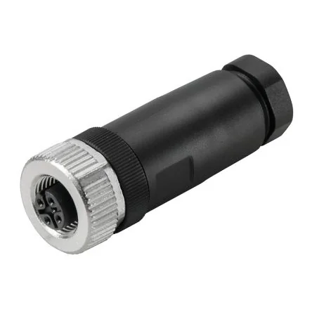Durable M12 female socket connector with 8 contacts, ideal for reliable connections in harsh environments.