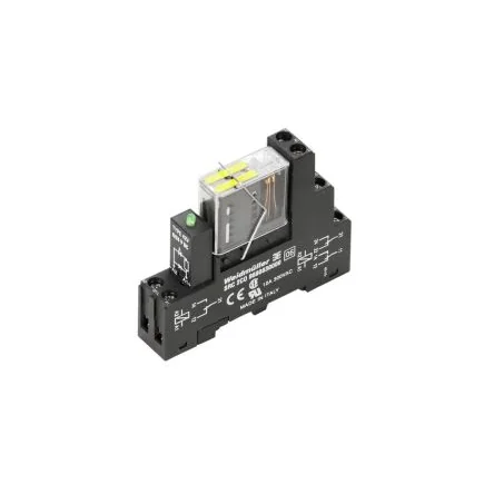 This Weidmüller DIN Rail Power Relay operates at 24V dc with a DPDT contact configuration.