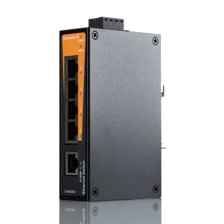 Weidmüller Ethernet SwitchThe Weidmüller basic line series unmanaged Ethernet switch helps to receive the data reliably with fast Ethernet ports. It is the simplest active network component. It does not need to be configured therefore, it is very flexible. This Ethernet switch uses basic standard protocols such as auto-negotiation, auto-crossing and flows control and it can automatically adjust to the different transmission speeds or connector wiring.Features and BenefitsHigh-performance Economical solution 5 RJ45 data ports Fast Ethernet Operating temperature ranges between -10°C and 60°C DIN rail mount Data transfer rate 10/100Mbit/s Rugged hardware design well suited for hazardous locations Supply voltage is12/24/48 Aluminium housingApplicationsIndustrial sites Networking