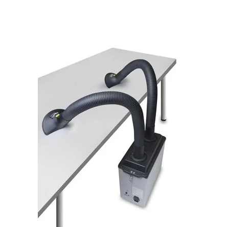 Efficient solder fume extraction for up to two workstations, featuring HEPA and gas filters.