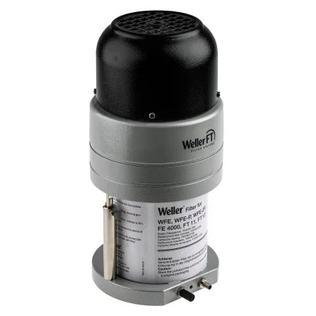 The main filter cartridge and sub-micron particulate air filter are available as replacement parts. Weller WFE, WFE-P Zero Smog Fume Extraction Units. Weller Zero Smog WFE series are low noise fume extractor units that ensure breathable air at your workbench. Two types are available, the standard WFE model portable filter that ‘s compressed air-driven and the WFE P that ‘s electrically driven with a built-in pump with two suction stages. The extraction units are designed to be used with Weller FE soldering irons which offer a smoke tube in the handle. Why would you buy these extractor units?. Fume extraction is a vital component during soldering. Solder fumes can be extremely harmful to individuals and the environment. Weller solder fumes extractors are the ideal solution for ensuring breathable quality air during soldering. The units are completely portable, so they can be positioned where you need it. The Zero Smog units can be used for up to two workplaces and the filters can be changed quickly with ease. Features and Benefits. ;ul> ;li>Two models available – WFE and WFE P ;/li> ;li>For use with FE soldering irons ;/li> ;li>Unit for up to 2 solder work stations ;/li> ;li>Quick and easy installation ;/li> ;li>Low noise levels ;/li> ;li>Quick and easy filter replacement ;/li> ;li>Maintenance-free ;/li> ;/ul>. WFE. ;ul> ;li>Operating on 3.5 to 6 bar clean ; oil-free compressed air ;/li> ;li>Prefilter is a fine particulate gas filter (EU7) ;/li> ;li>Extracts fumes from up to 2 fume extraction soldering pencils ;/li> ;li>The compact size makes it convenient to use anywhere ;/li> ;li>Weller T005 36 402 99N = RS stock no: ; 611-9784 611-9784 ;/li> ;/ul>. WFE P. ;ul> ;li>Electrically driven solder fume extraction unit ;/li> ;li>Extracts fumes from up to 2 fume extraction soldering pencils ;/li> ;li>Compact ; convenient to use anywhere ;/li> ;li>230 V/50 Hz two speed maintenance-free pump makes independent from external air sources ;/li> ;li>Thermally-fused capacity motor protects the unit from overheating ;/li> ;li>Weller T005 36 383 99N (UK plug) = RS stock no: ; 405-3430 405-3430 ;/li> ;li>Weller T005 36 386 99N (Euro plug) = RS stock no: ; 468-7033 468-7033 ;/li> ;/ul>. Spare Parts. ;ul> ;li>Compressed air filter T0058735757: = RS stock no: ; 515-1282 515-1282 (WFE only) ;/li> ;li>Main filter cartridge T0053641099 = RS stock no: ; 405-3452 405-3452 ;/li> ;li>Submicron particulate air filter T0053642199 = RS stock no: ; 162-2572 162-2572 ;/li> ;/ul>. FAQ ‘s. Are they easy to set-up? Yes, the Zero Smog series extraction units can be installed in under 5 minutes and are completely portable.