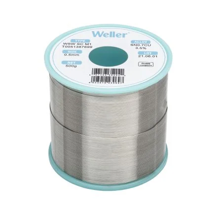 Weller Wire, 0.5mm Lead Free Solder, 228°C Melting Point - T0051387699