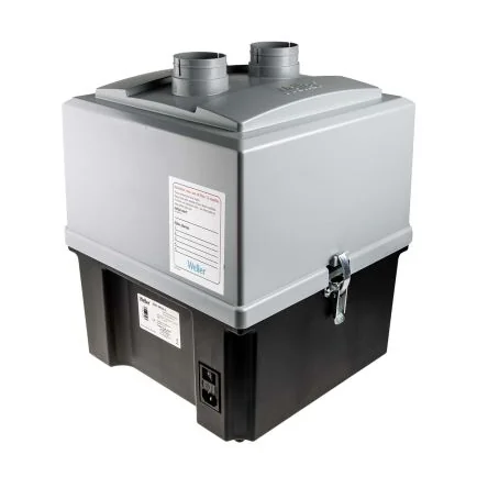 Weller TL Zero Smog Fume Extraction Units. Weller Zero Smog TL series is a low noise fume extractor unit that ensures breathable air in your workplace. Two types are available, the standard filter TL model and the gas filter model. They have a large filter surface plus a maintenance-free brushless blower which gives you an extraction volume of 190 m3/h with a strong vacuum of 3000 Pa. The extraction unit is quiet and includes an automatic filtration monitoring system with an audio-visual filter alarm. The units are completely portable so can be positioned where you need it plus the easy click extraction arms provide flexibility. The TL Zero Smog unit can be used for up to two workplaces and the filters can be changed quickly with ease. Why would you buy these extractor units?. Fume extraction is a vital component during soldering. Solder fumes can be extremely harmful to individuals and the environment. Weller solder fumes extractors are the ideal solution for ensuring breathable quality air during soldering. Features and Benefits. ;ul> ;li>Two models available – Standard filter and the gas filter ;/li> ;li>Unit for up to 2 solder work stations ;/li> ;li>Quick and easy installation ;/li> ;li>Easy click system ;/li> ;li>Low noise levels ;/li> ;li>Quick and easy filter replacement ;/li> ;li>Audio-visual filter change alarm system ;/li> ;li>Variable speed settings ;/li> ;li>Active carbon foam filter for effective gas cleaning ;/li> ;li>Maintenance-free ;/li> ;li>Brushless EC blower ;/li> ;/ul>. Specification. ;ul> ;li>Length 335 mm ;/li> ;li>Width 330 mm ;/li> ;li>Height 445 mm ;/li> ;li>Weight 9 kg ;/li> ;li>Voltage 230 V, 50 Hz, and 120 V, 60 Hz ;/li> ;li>Noise level 50 dB (A) ;/li> ;li>Electrical power 120 W ;/li> ;li>Maximum blower vacuum in Pa – 3000 ;/li> ;li>Maximum blower extraction rate of 190 m3/h ;/li> ;li>Pre-filter is an F7 fine dust filter ;/li> ;li>Compact filter is a H13 particle filter plus a gas filter (10% carbon foam filter) ;/li> ;li>Particle filter MPPS 99.95% ;/li> ;/ul>. Weller TL Zero Smog Fume Extraction Unit Options. ;ul> ;li>Zero Smog TL Fume Extraction Unit – 230 V F/G; FT91013699, RS stock no. ; 124-0171 124-0171 ;/li> ;li>Zero Smog TL with a Gas Filter – 230 v F/G; FT91014699, RS stock no ; 124-0172 124-0172 ;/li> ;/ul>. FAQ ‘s. Are they easy to set-up? Yes, the Zero Smog TL can be installed in under 5 minutes and is completely portable.