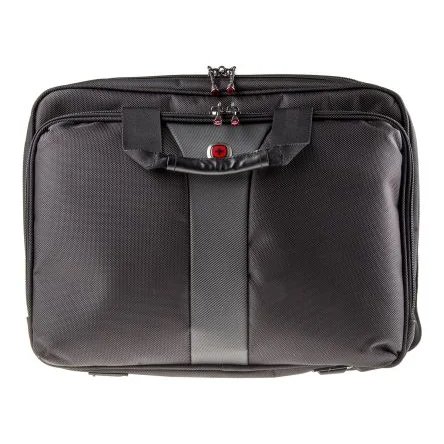 Wenger Legacy 16in. Double Laptop Case. From Wenger SwissGear, the LEGACY double slimcase laptop bag is designed for laptops and notebooks up to 17 inches. Featuring a padded computer pocket with a secure flap over, the safety of your portable device is guaranteed. The LEGACY also features a front pocket with organizer that is ideal for keeping accessories and essentials neat and accessible. With soft-grip handles and a removable shoulder strap, the case is easy to carry and ideal for on-the-go business engagements. It also checkpoint friendly. Durable, comfortable and stylish, the SwissGear LEGACY computer case is a versatile solution to storing and transporting you portable devices. Features and Benefits. Fits up to most 16in. Notebooks Checkpoint Friendly Laptop Compartment Full feature Organizer SWISSGUARD Computer Protection Soft Grip Padded Handles Tear Resistant Shoulder Strap