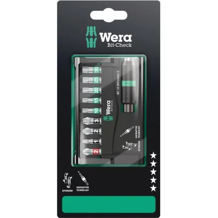 This 10-piece screwdriver bit set from Wera provides essential tools for various fastening tasks.