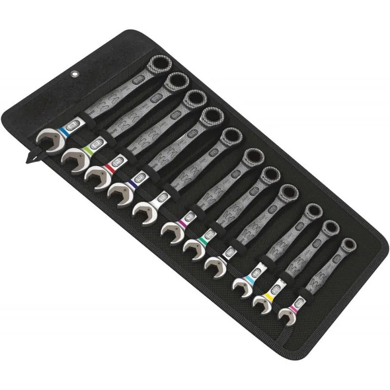 The Wera Joker 11-Piece Ratcheting Combination Wrench Set is engineered for precision and durability, offering a comprehensive solution for fastening tasks.