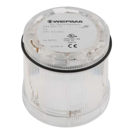 Werma 644 Series Clear Steady Effect Beacon Unit, 24 V dc, LED Bulb, AC, DC, IP65 - 644.400.75