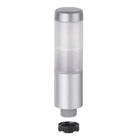 Kompakt 37 LED Signal Tower. The KOMPAKT 37 is a slim-line LED signal tower available in two versions, either in a black housing with coloured lens or in a metal finish with a clear lens. The coloured lens signal towers have coloured LEDs which provide maximum colour intensity, making them particularly effective in lower light environments. In bright sunlight however it can be difficult to see the difference between a coloured lens and an illuminated coloured lens. This is where the clear lens signal tower comes into its own as it is only coloured when in the ‘ON ‘ position, therefore ensuring it is not mistaken as being illuminated when it is in the ‘Off ‘ position. Thanks to a diameter of just 37.5 mm the KOMPAKT 37 is ideally suited to applications on small machines and equipment with limited space. Also available are versions with a 85dB buzzer integrated into the cap of the signal tower which provide an additional audible warning. Pre-assembled signal tower with max. 5 tiers Each light tier has 8 LEDs LED permanent light With or without buzzer With M12 plug or cable connection IP65 protection Up to 50,000 hours of life with very low power consumption Maintenance free LEDs