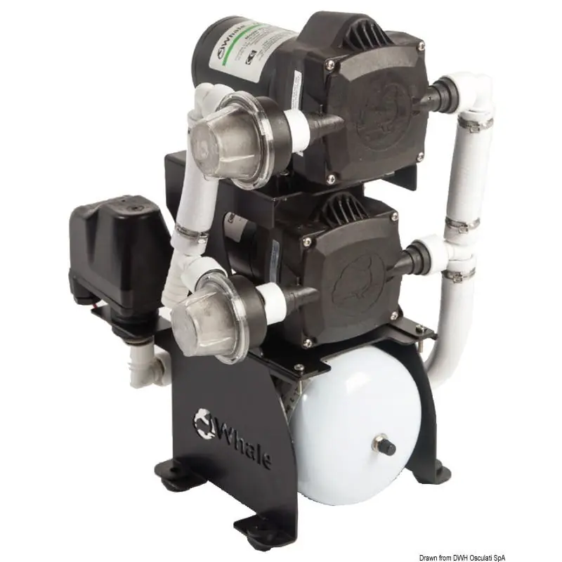 - Quick Installation Kit: The pre-assembled kit includes all necessary components—two integrated pumps, two external pressure switches, two filters, one storage tank, supports, and connections—for a streamlined setup process.