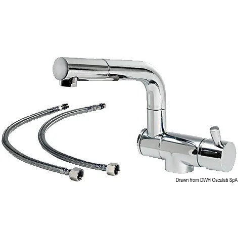 Durable double-connection wheel in chromed brass for a sleek, flat countertop design.
