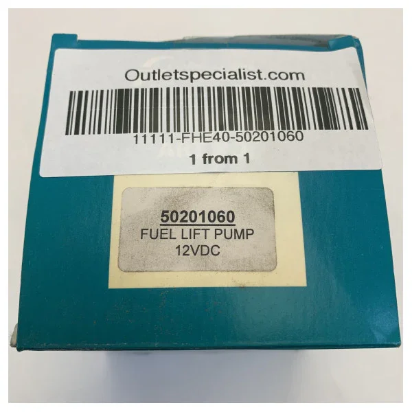 This model, with part number 50201060, operates at a nominal voltage of 12V DC. The device has a low power consumption to conserve battery charge and is equipped with the necessary connections for fuel hoses (check the diameter for a perfect fit). The pump is suitable for use with diesel fuel and has a robust, waterproof housing.