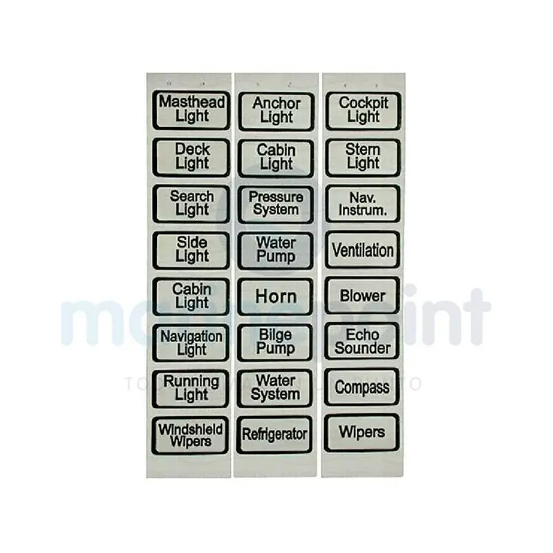 Organize and categorize the electrical and electronic systems on your vessel with these white adhesive labels, compatible with Goldenship brand panels.