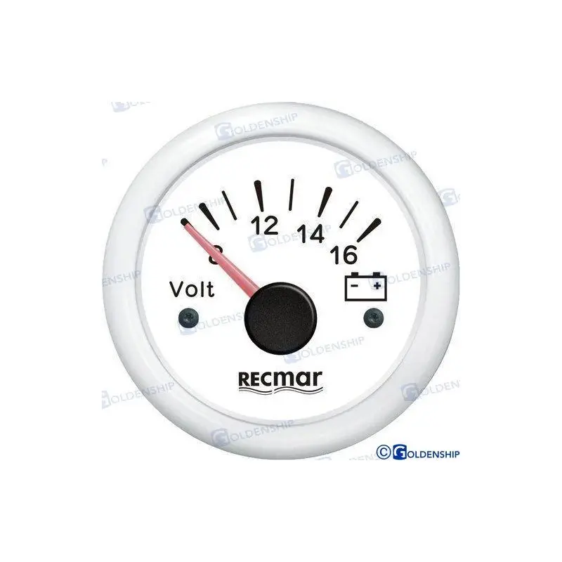 The white RECMAR nautical voltmeter is a fundamental instrument for monitoring battery voltage on board, allowing you to quickly detect voltage drops and act before failures occur in your electrical system.