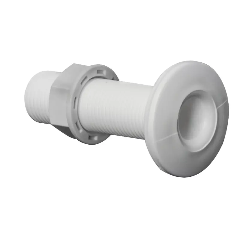 Durable white plastic threaded skin fittings for marine use by Osculati.