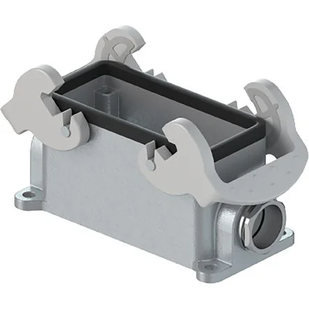 Durable heavy-duty power connector housing with IP54 protection and a wide temperature range.