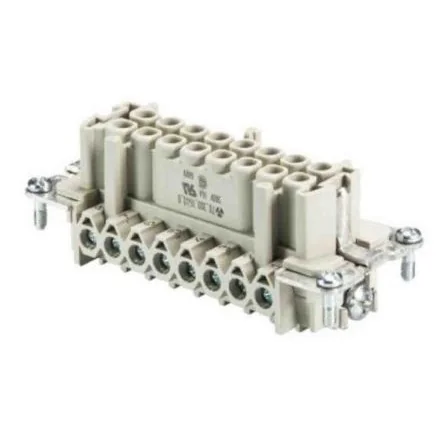 Reliable 16-way female insert for panel mounting, rated at 16A and 500V.