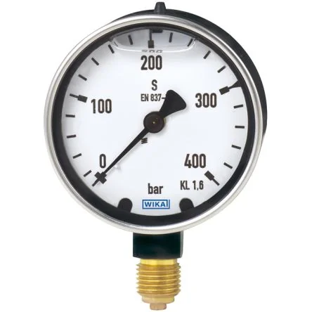 Accurate pressure measurement with WIKA's 40bar analogue gauge, ideal for various applications.