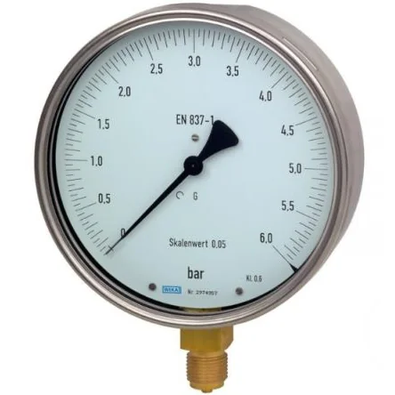 WIKA NPT 1/2 Analogue Pressure Gauge 10bar Bottom Entry 160mm Outside Diameter - 48778569