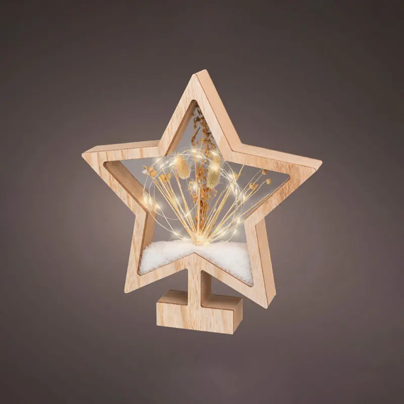 Wooden star with micro LEDs 4x26x28cm 25 LEDs. indoor IP20 warm white natural details 2xAAA with programmer.