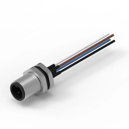 Reliable M12 circular connector with IP68 rating for secure panel mounting.