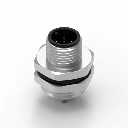 Reliable M12 circular connector with 5 contacts and IP68 rating for secure panel mounting.