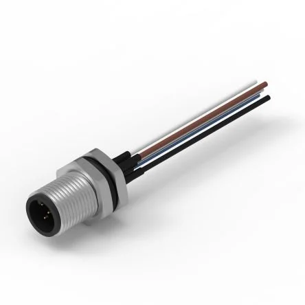Durable M12 circular connector with 5 contacts and IP68 rating for reliable performance.