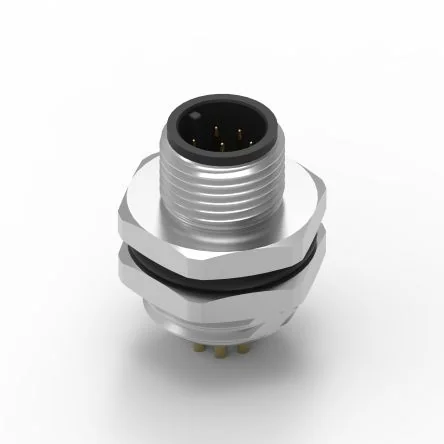 Reliable M12 circular connector with 8 contacts and IP68 rating for secure panel mounting.
