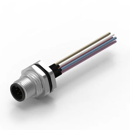Durable M12 circular connector with 8 contacts, designed for reliable panel mounting in harsh environments.