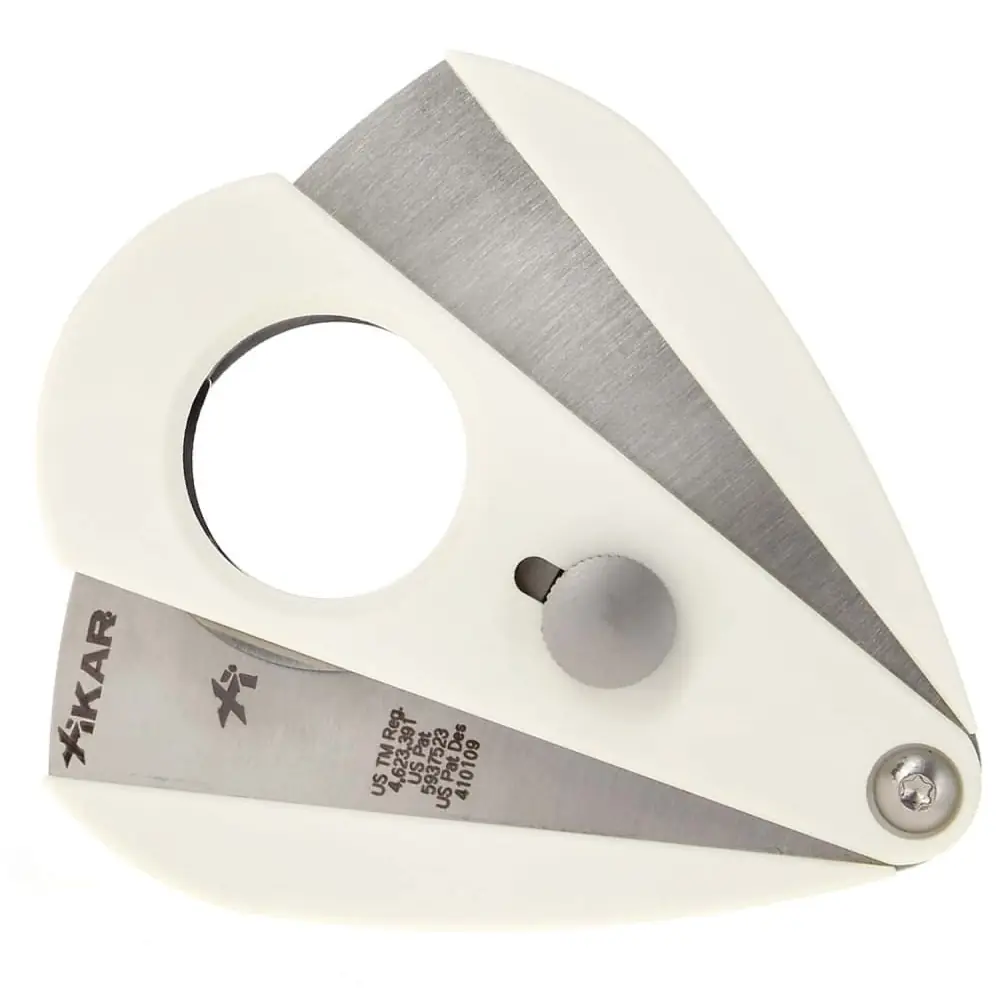 xikar xi2 cigar cutter with automatic opening by push button and manual closing. it ensures a clean and burr-free cut of the head of your cigar.