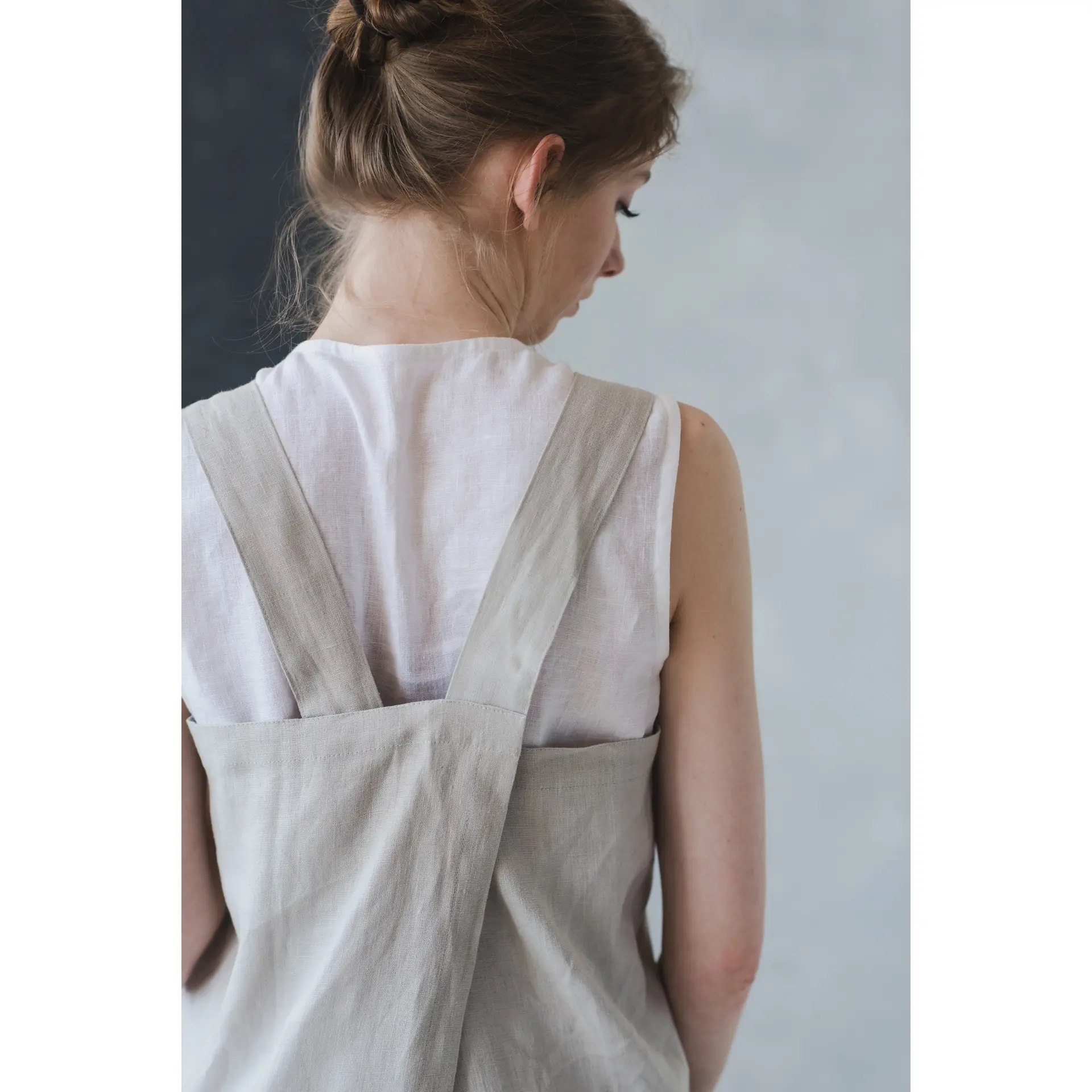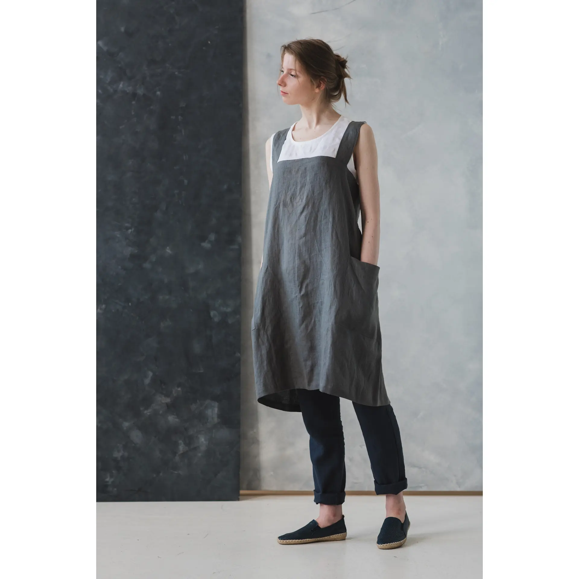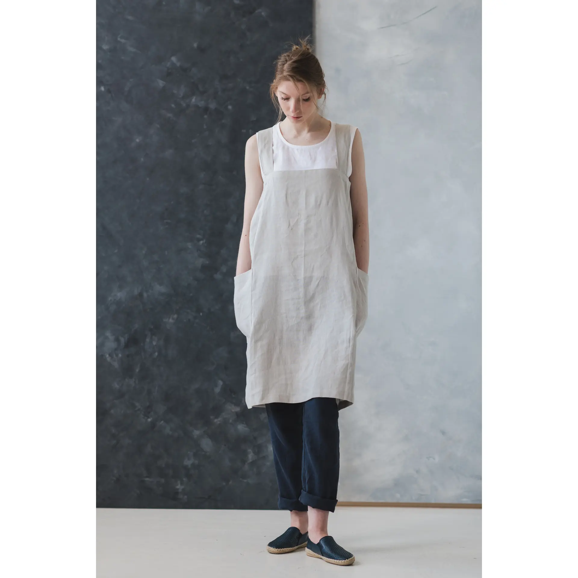 The linen cross-body apron has no ties-no need to spend time whilst putting on or taking off. A linen apron is a useful product to keep your clothes clean from dirt. A linen pinafore dress apron is a great housewarming gift for the person you love!