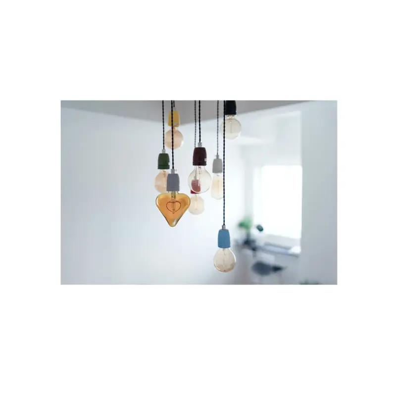 This amber heart-shaped LED bulb from XXCELL not only provides lighting but also enhances your decor. Its unique heart shape gives it a special charm, making it noticeable in any room. It emits light with a colour temperature of 2100K to create a warm atmosphere leaning towards orange. You can use it in both orientations, either hanging or standing. Additionally, the bulb consumes little energy with a power rating of only 3 W.