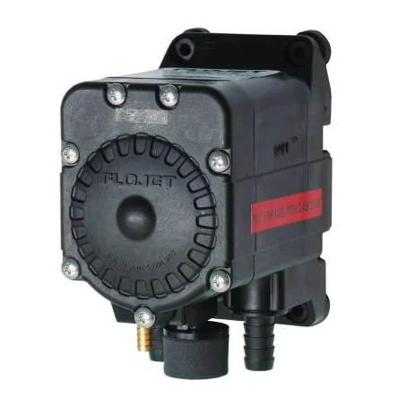 Flojet G70K202A (RS stock no. ; 763-2480 763-2480 ) is ATEX approved. Unless specified otherwise, do not use any other Flojet pump with volatile low flash point solvents or fuels, flammable liquids or in explosive atmospheres. CE, NSF. 1. Flojet Compact Air Operated Double Diaphragm Pumps. Self-priming, compact diaphragm pumps suitable for water and light water-based chemicals. Pumps can be situated above liquid level. Run dry capability Capable of Air or CO ;sup>2 ;/sup> drive pressures up to 6.8 bar Shuttle valve eliminates stalling Corrosion resistant materials capable of handling a wide range of chemicals Self-primes up to 4.5m Easy installation Santoprene and Viton diaphragms available