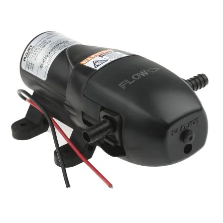 Xylem Flojet Positive Displacement PumpThe Xylem Flojet ultra-compact diaphragm positive displacement pump uses a unique duplex design to deliver flow and pressure comparable to much larger pumps. Its maximum flow rate is 3.8L/min. The built-in pressure switch automatically starts and stops the pump when the discharge valve is opened and closed. This pump is suitable for water and light water-based chemicals. Caution: Do not use for volatile low flash point solvents or fuels, also unsuitable for flammable liquids or to be used in an explosive atmosphere.Features and BenefitsThe supply voltage rating is 12VDC Input power is 30W Maximum working pressure is 2.5bar Maximum Fluid temperature is 43°C Self-priming capability up to 0.7m Can be located above the liquid level Duplex diaphragm design allows extended dry running without damage Built-in thermal overload protection Low amp draw for battery-powered applications Can be situated above the liquid levelCertificationsCE certified NSF approved IPX4 rated