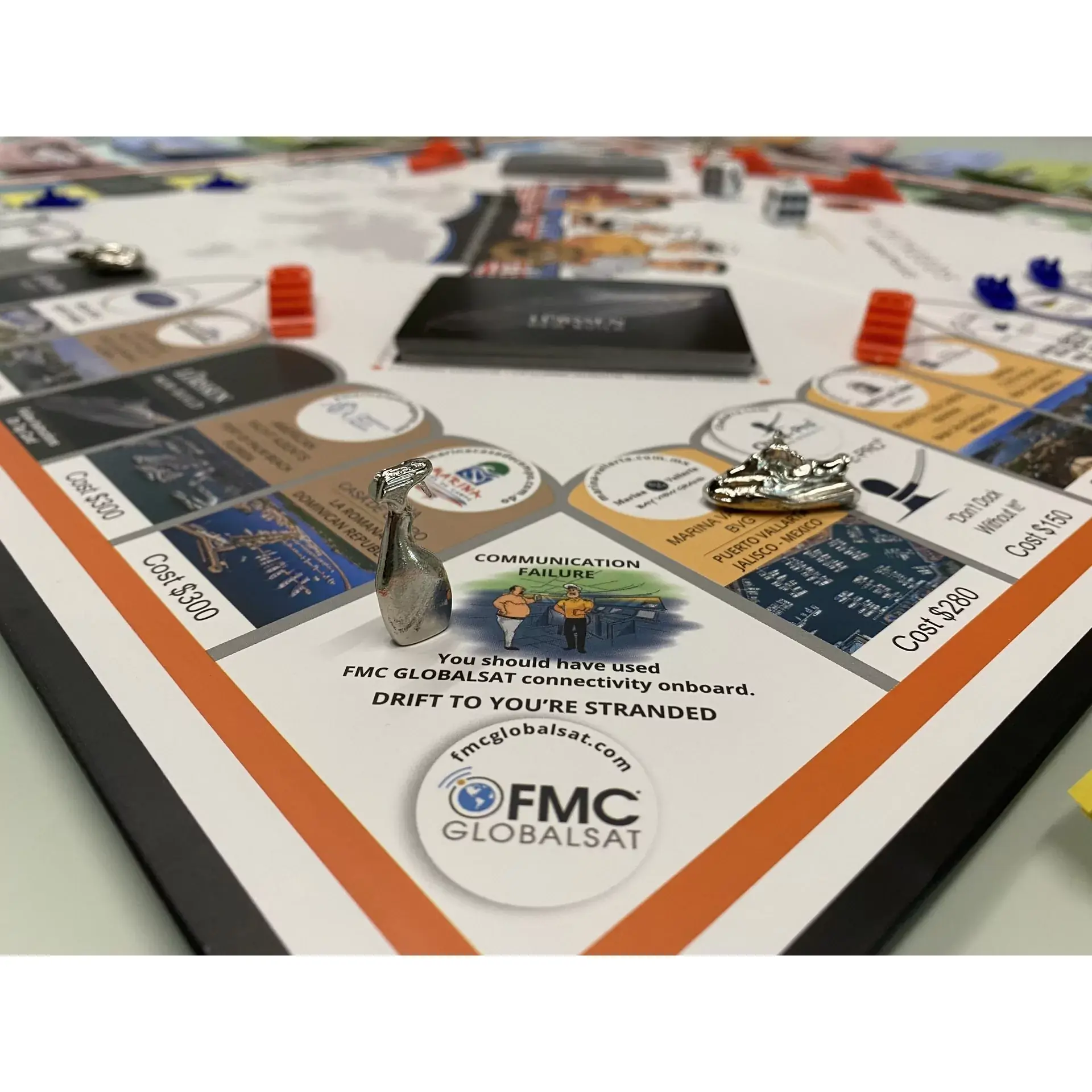 YACHT - OPOLY USA/Caribbean limited edition takes all of the familiar aspects of a "classic" board game you know and love, but adds a yachting based twist. This second edition of YACHT - OPOLY has metal playing pieces that include a mop and bucket, radio, jetski, spray bottle shrimp and a pig to represent the exumas and different departments onboard.