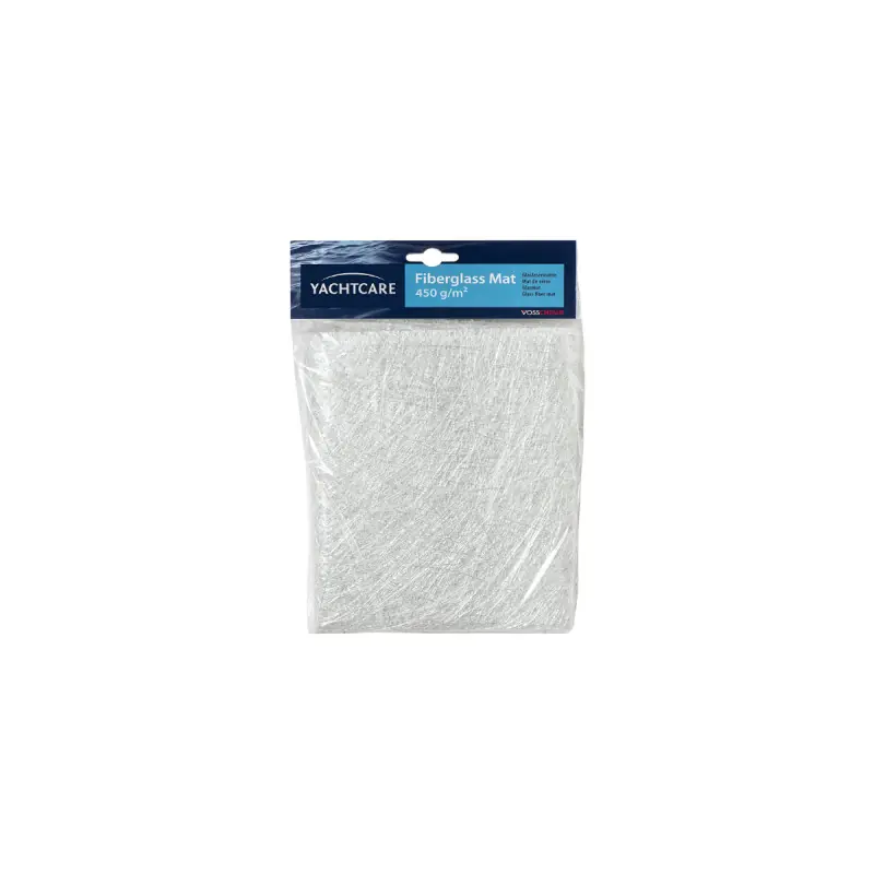 Yachtcare Glass Mat 450g/m2 1m2 reinforcement material for polyester resins. It ensures great waterproofing and rigidity. The glass mat is saturated with resin as soon as it no longer shows any white areas (air bubbles). The folds can be smoothed out two minutes after the resin action begins. An impregnated layer of glass mat 300g/m2 gives a thickness of about 0.9 mm. It is used as a first layer behind a thin layer for moulded parts and as a final layer for coverings.