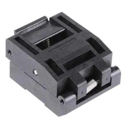 QFN Test Sockets - Clamshell. Clamshell test sockets for QFN's Spring loaded hinged lid latches to retain ICs Easy, repeatable access for test purposes High reliability, durability and temperature range Body material Glass Filled PES; Glass Filled PEI Contact material Beryllium Copper Contact plating Gold over Nickel Insulation resistance 10,000 MO (At 100 Vdc) Withstand voltage 500Vac for 1 minute Contact resistance 30mO (at 10mA) Operating temperature -40°C to 150°C Contact force 11gf per pin approx. 0.5mm pitch