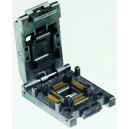 QFP Test Sockets - Clamshell. Clamshell test sockets for QFP's Spring loaded hinged lid latches to retain ICs Easy, repeatable access for test purposes High reliability, durability and temperature range Range supports a variety of pitches Body material Glass Filled PES; Glass Filled PEI Contact material Beryllium Copper Contact plating Gold Insulation Resistance 1000 MO (At 500 Vdc) Contact resistance 30mO (at 10mA) Operating temperature -55°C to 170°C Durability 10000 insertions