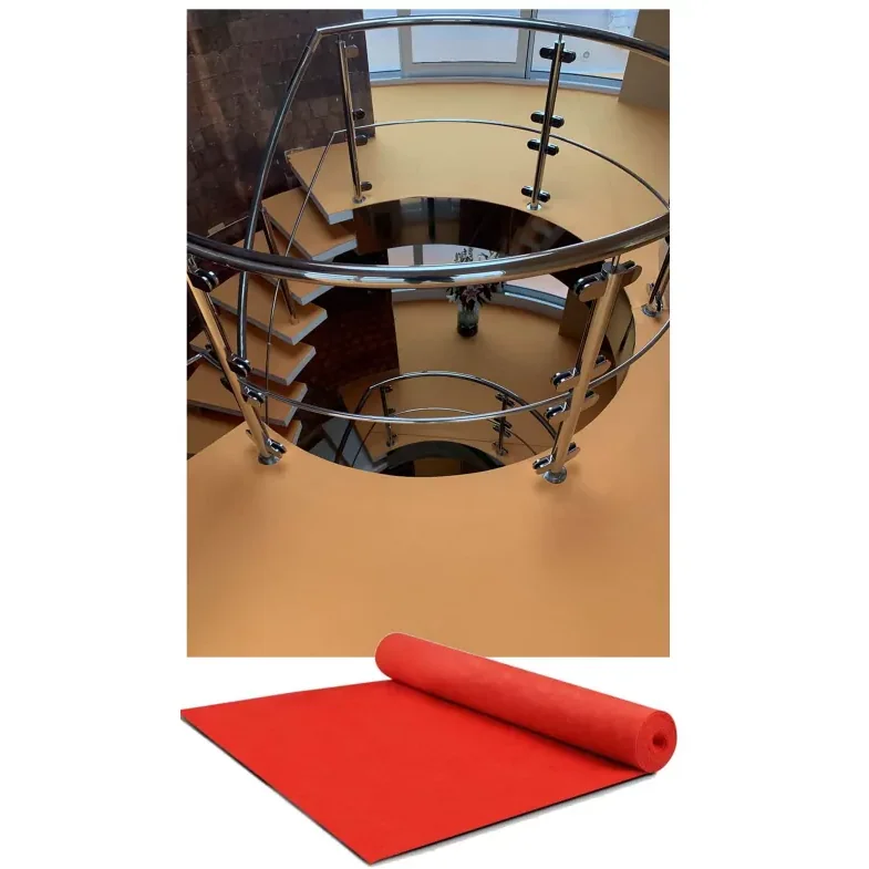 Needle - punched carpet has a precoat backing (providing flexibility and weight) well suited for in/outdoor use or for covering floors with irregularities or dark floors or even stairs.