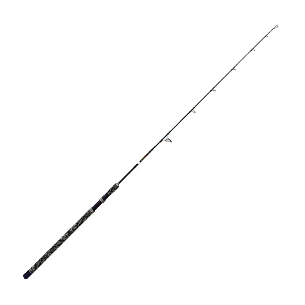 Its blank made of "Super Light High Modulus" carbon offers an excellent compromise between lightness and power reserve, capable of fighting fish from 15 to 40 kg effortlessly. The rod is equipped with Fuji KW ALCONITE guides mounted in a spiral ("Acid Guides"), a Fuji DPS reel seat, and an aluminium gimbal to secure it to the fighting belt. The high-density EVA handle ensures a secure grip even during long fights.